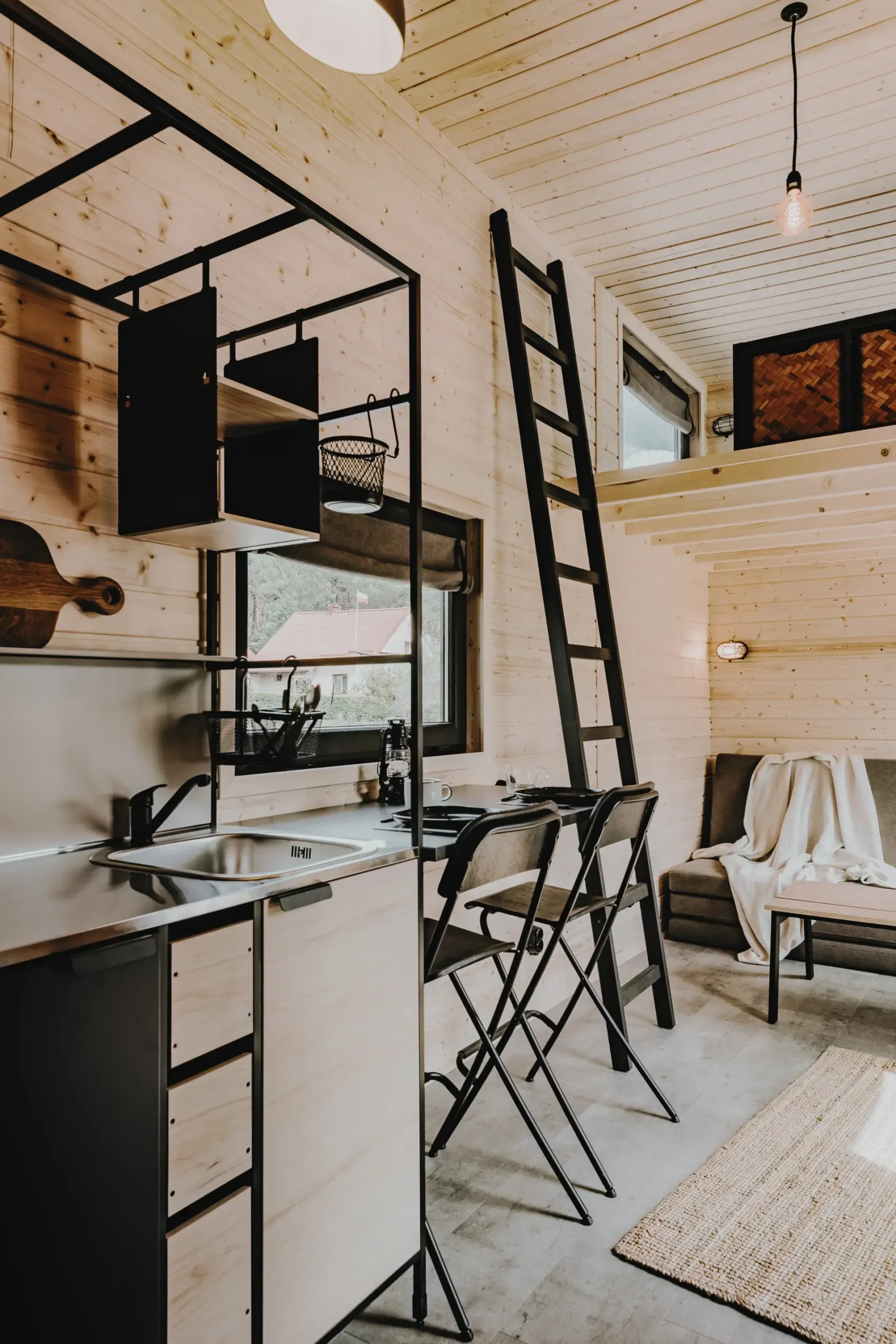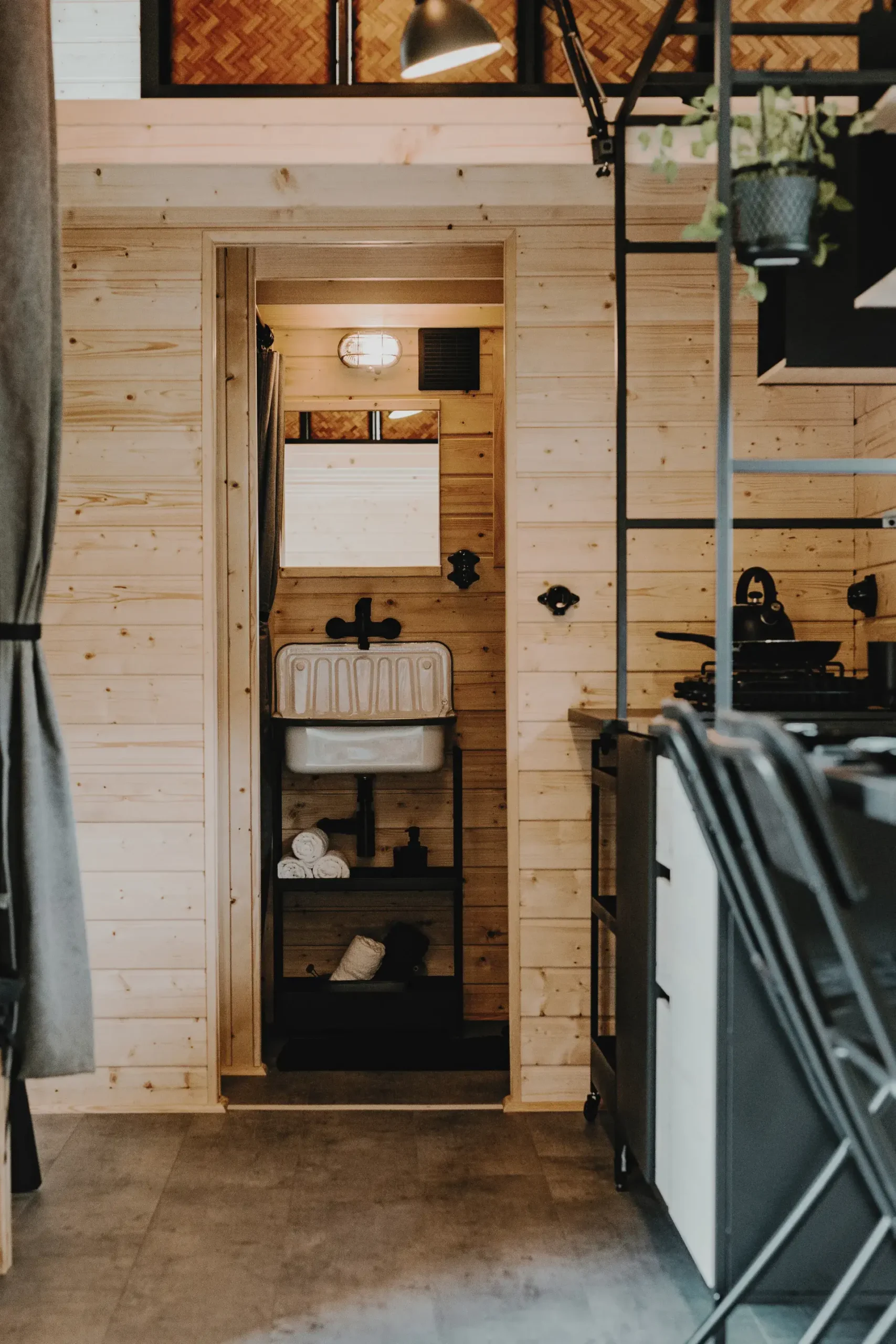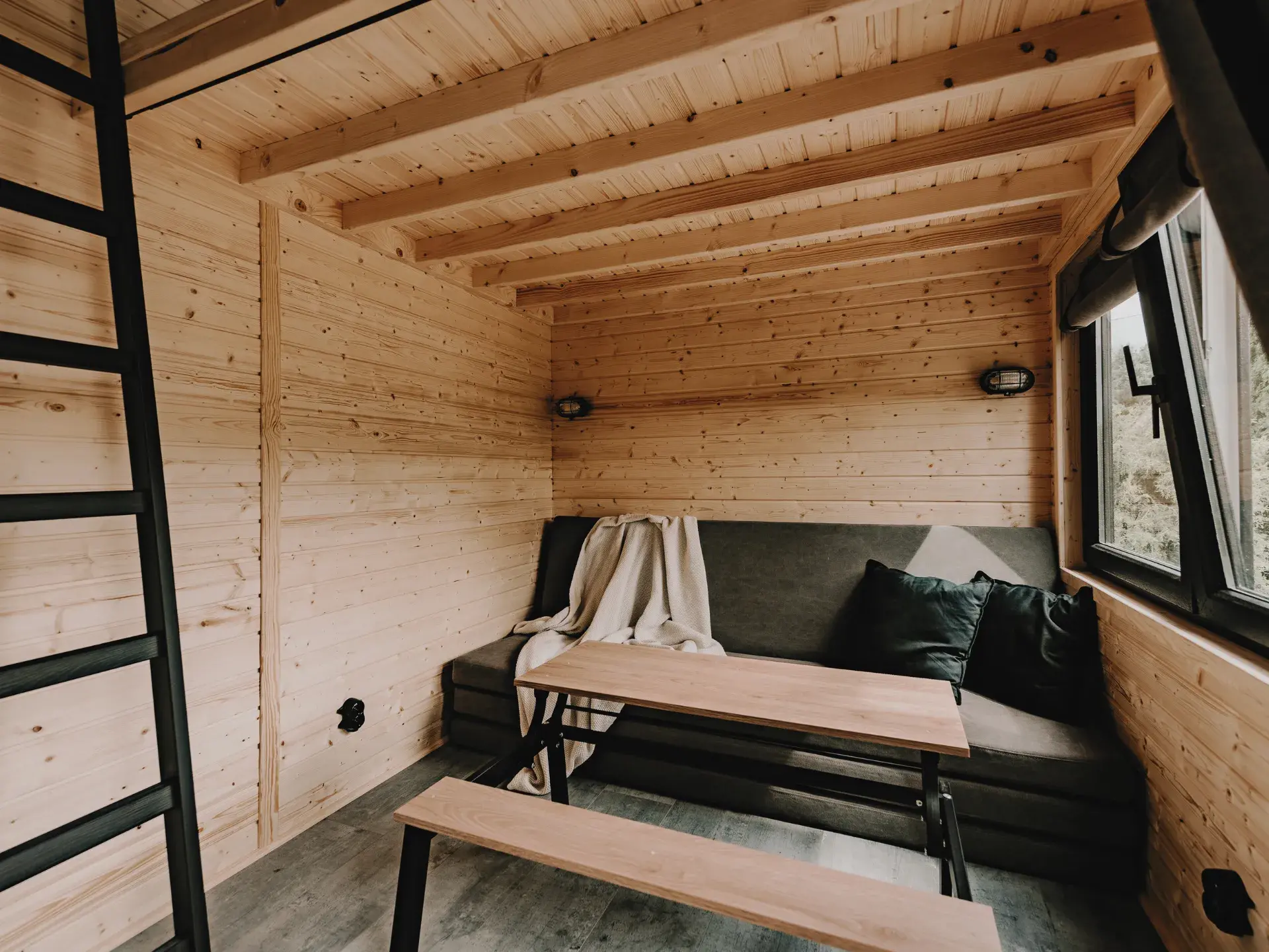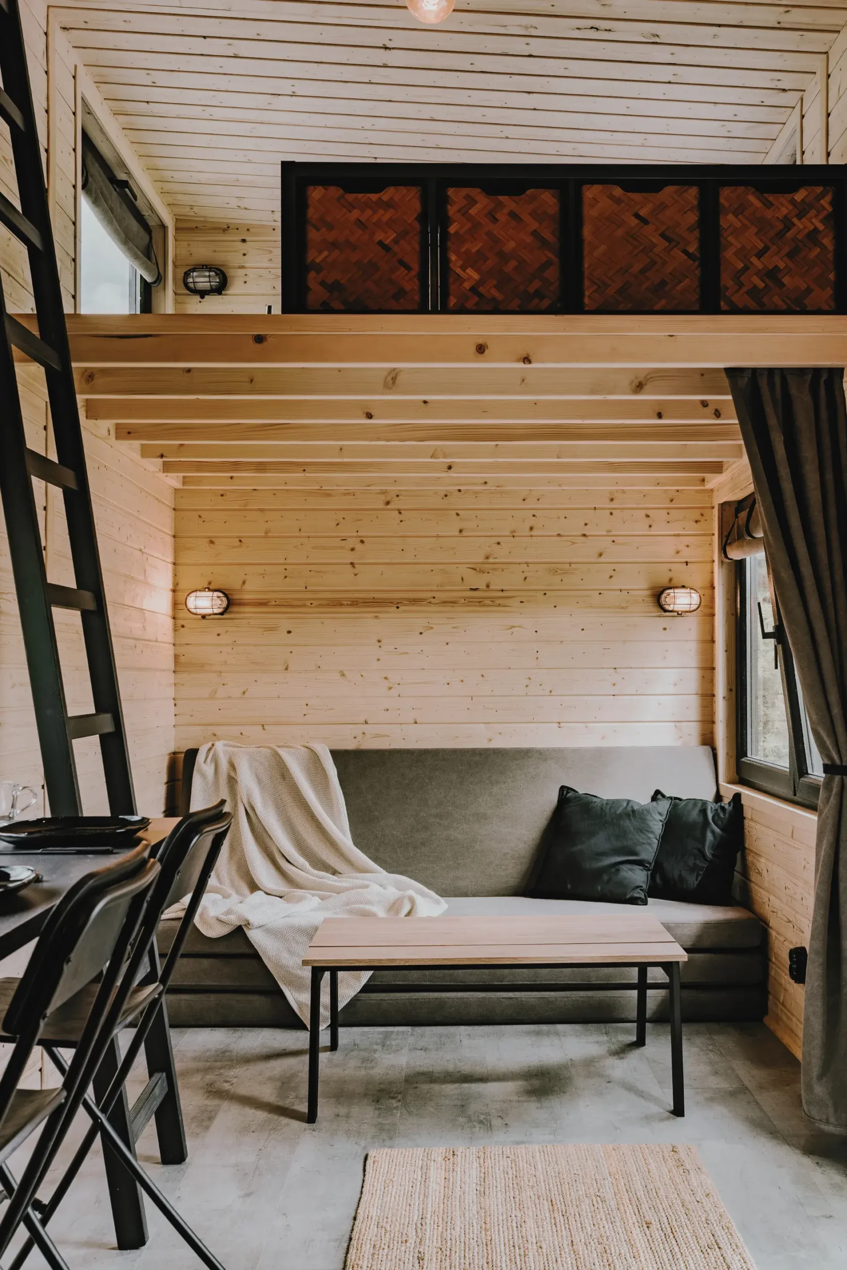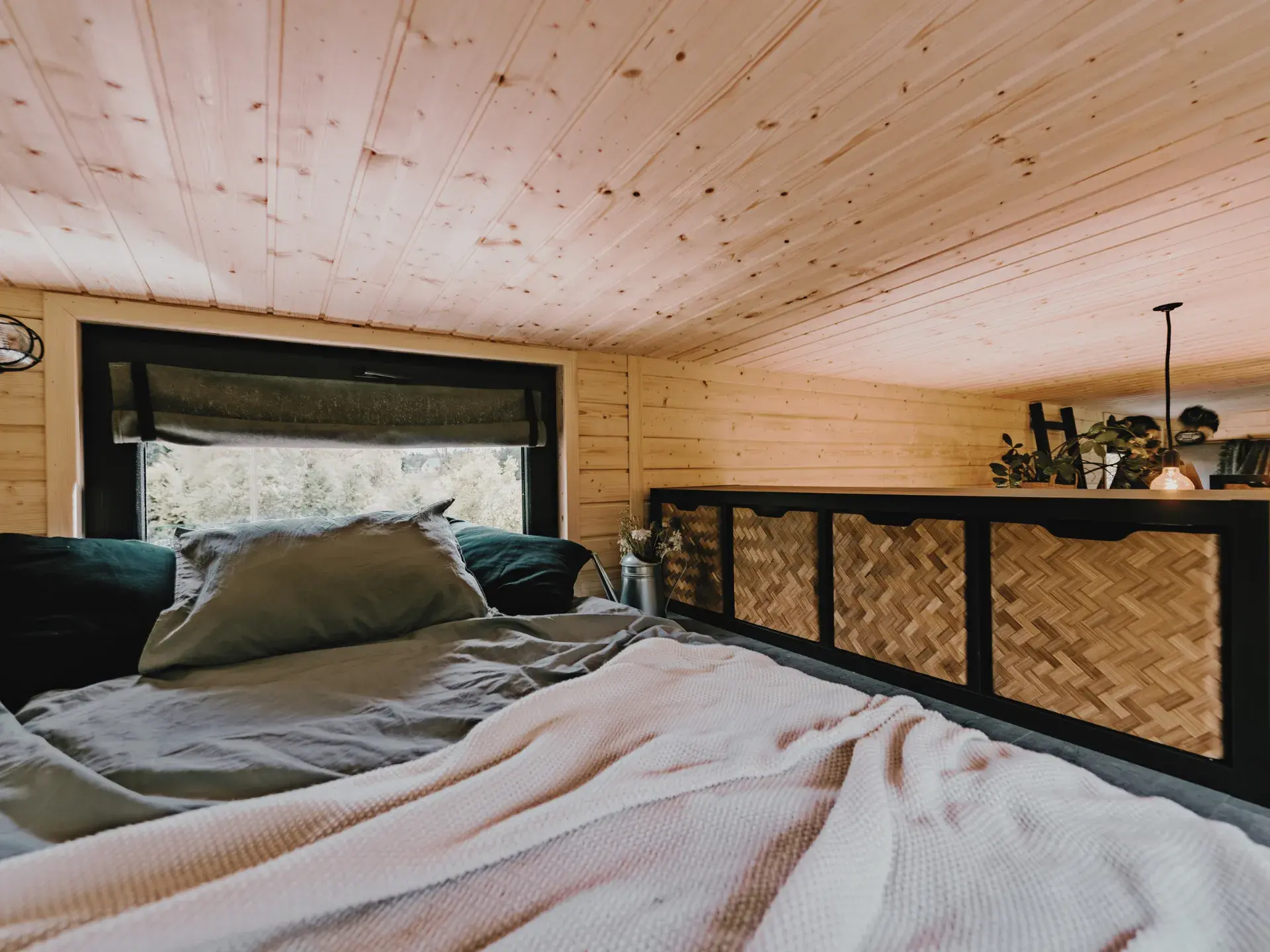 Entdecke Zaplin Tiny House – ein kleines Holzhaus, in dem du dem Alltag entfliehen kannst.