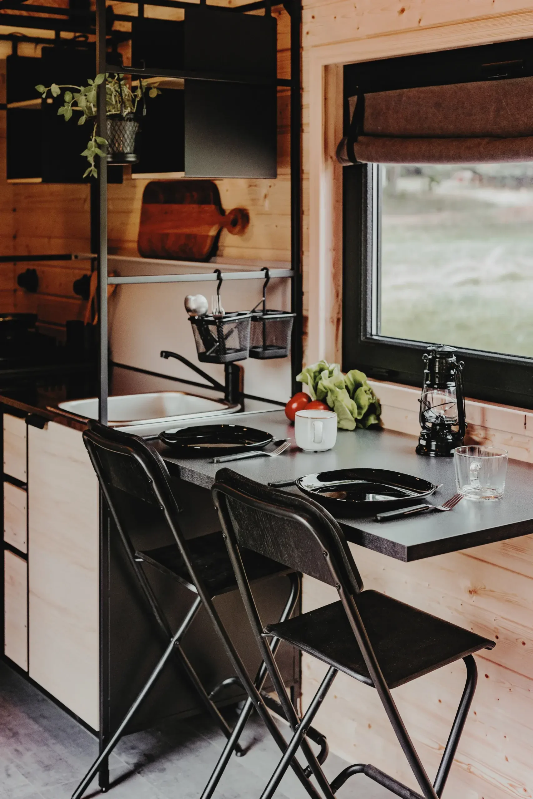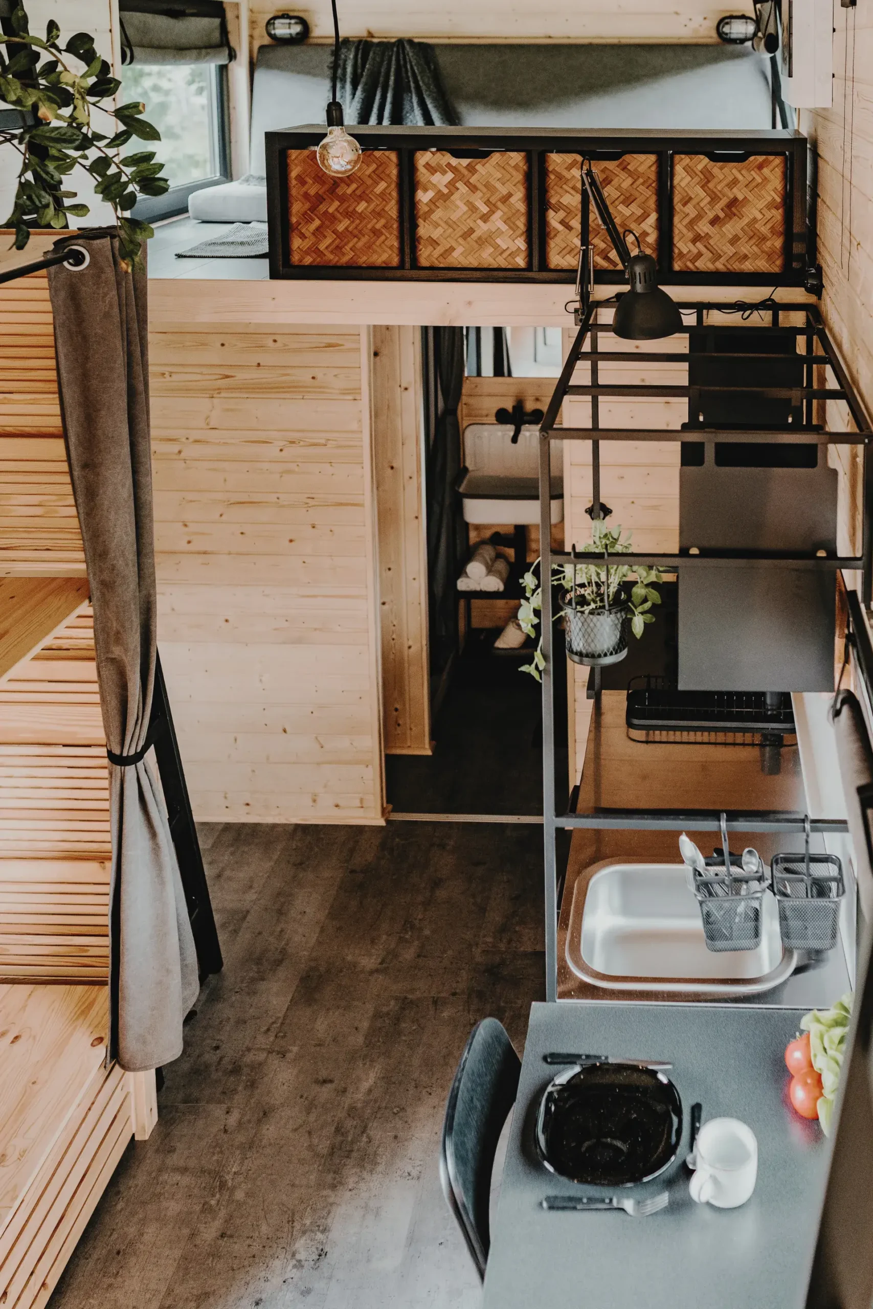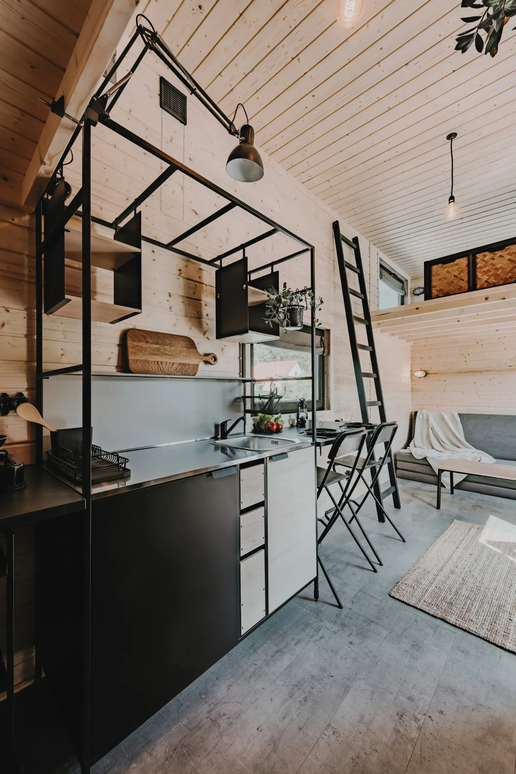 Hochwertige Materialien und eine durchdachte Konstruktion machen das Denos Tiny House zum Synonym für erstklassigen Wohnraum und ein cleveres Design, das Funktionalität und Komfort maximiert.