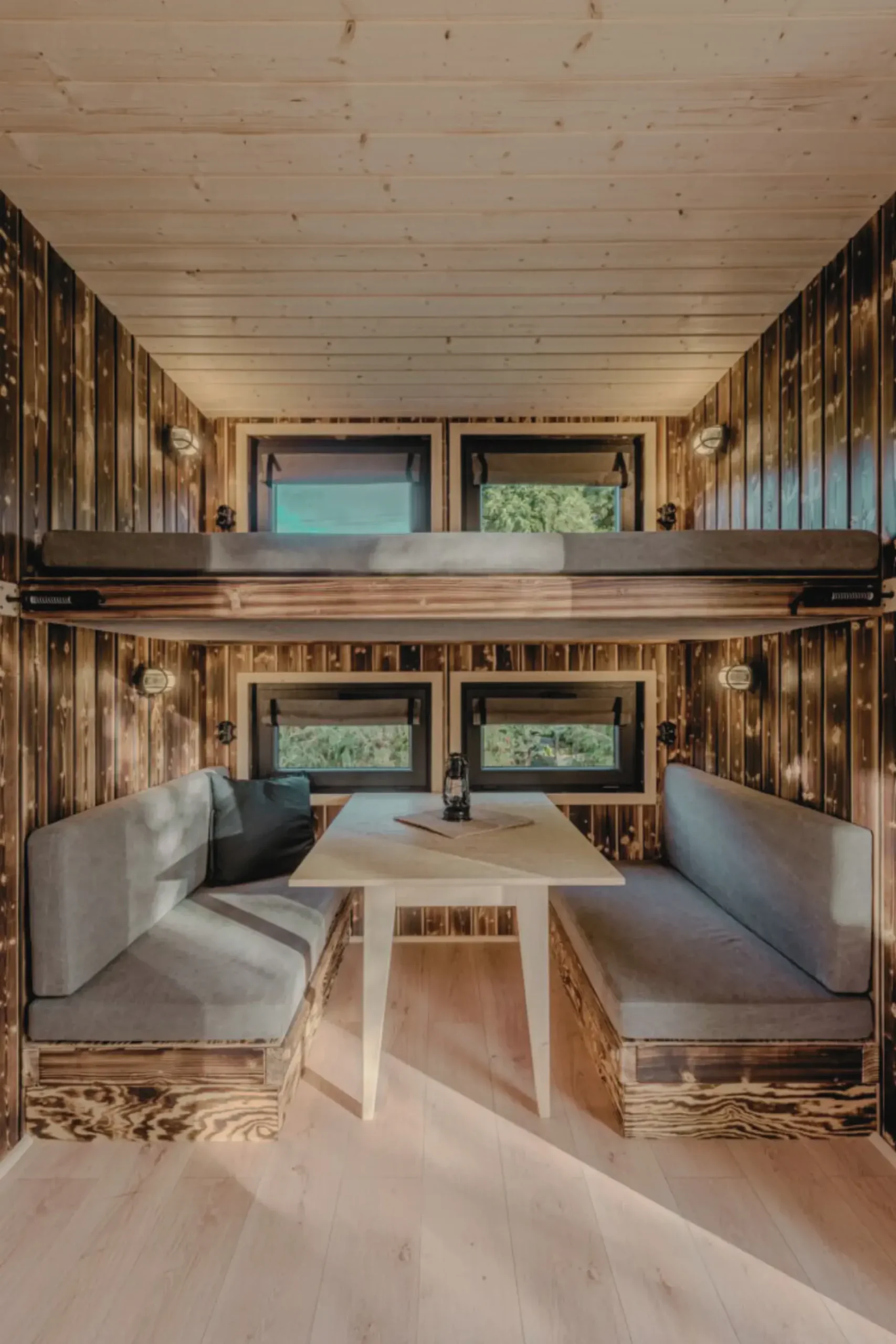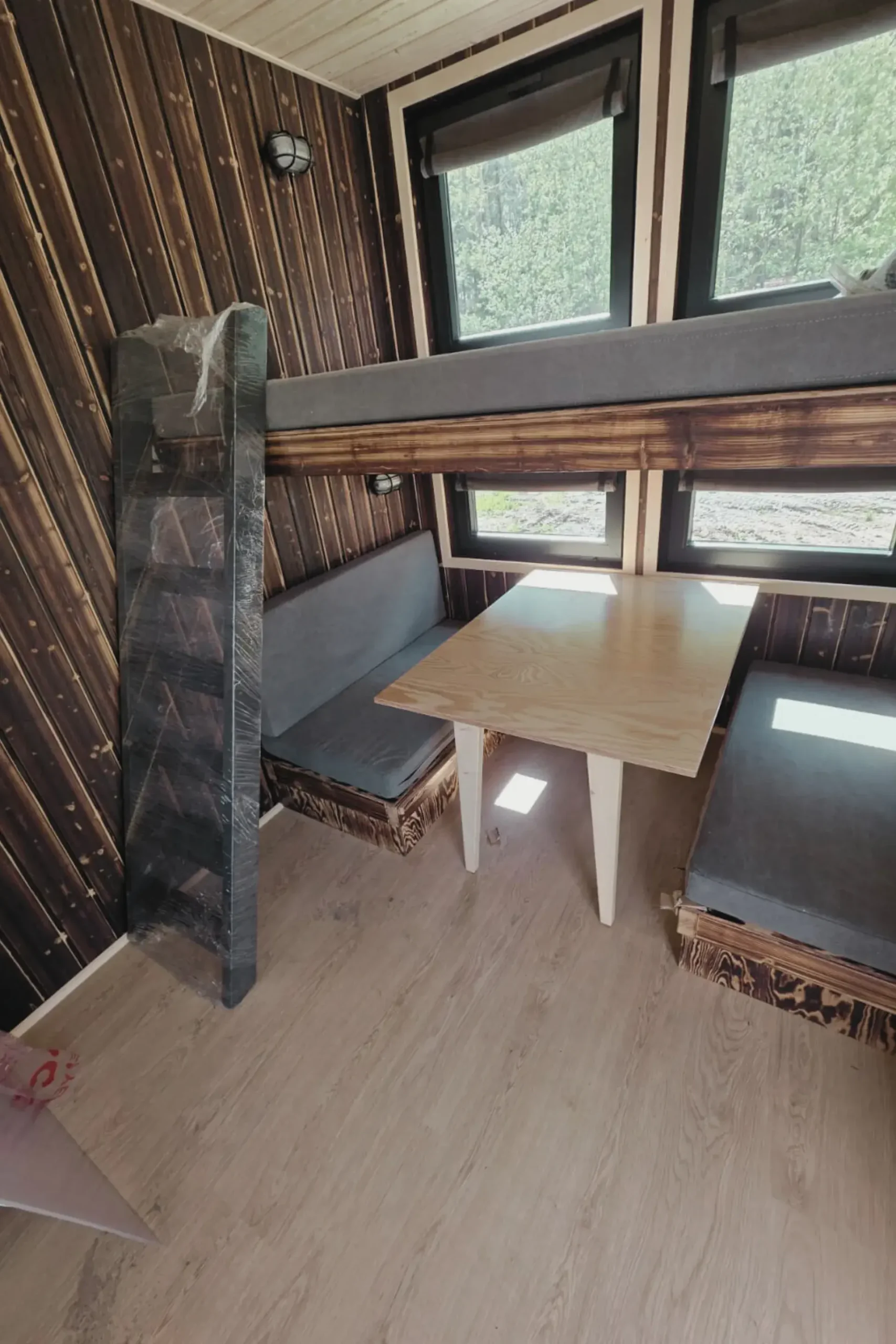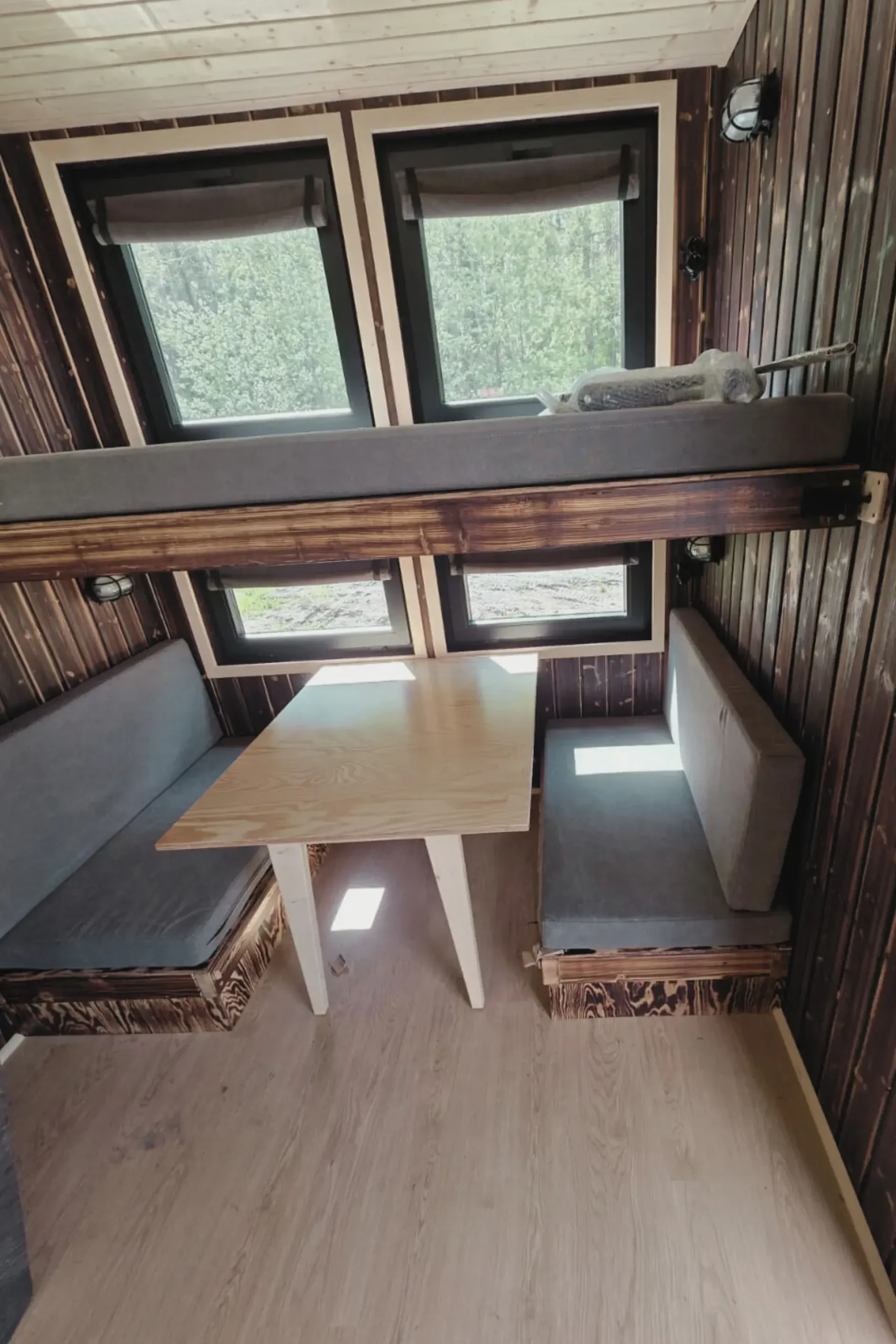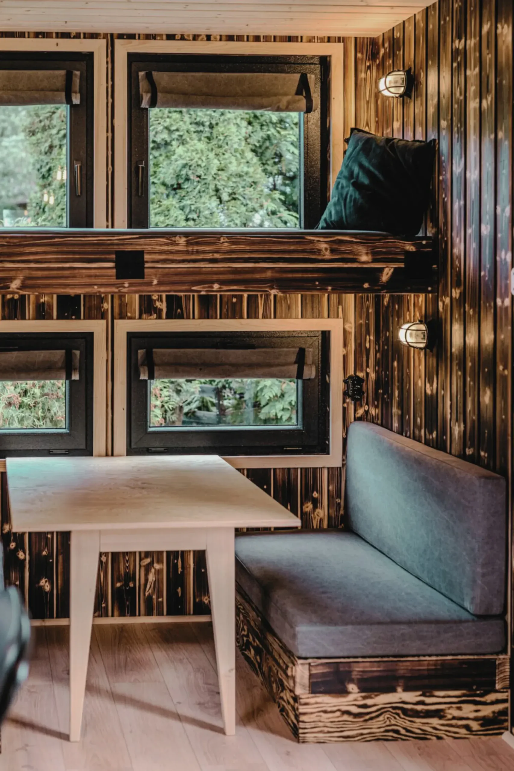 • Sitzecke mit Tisch und Bett in einem 120 cm tief