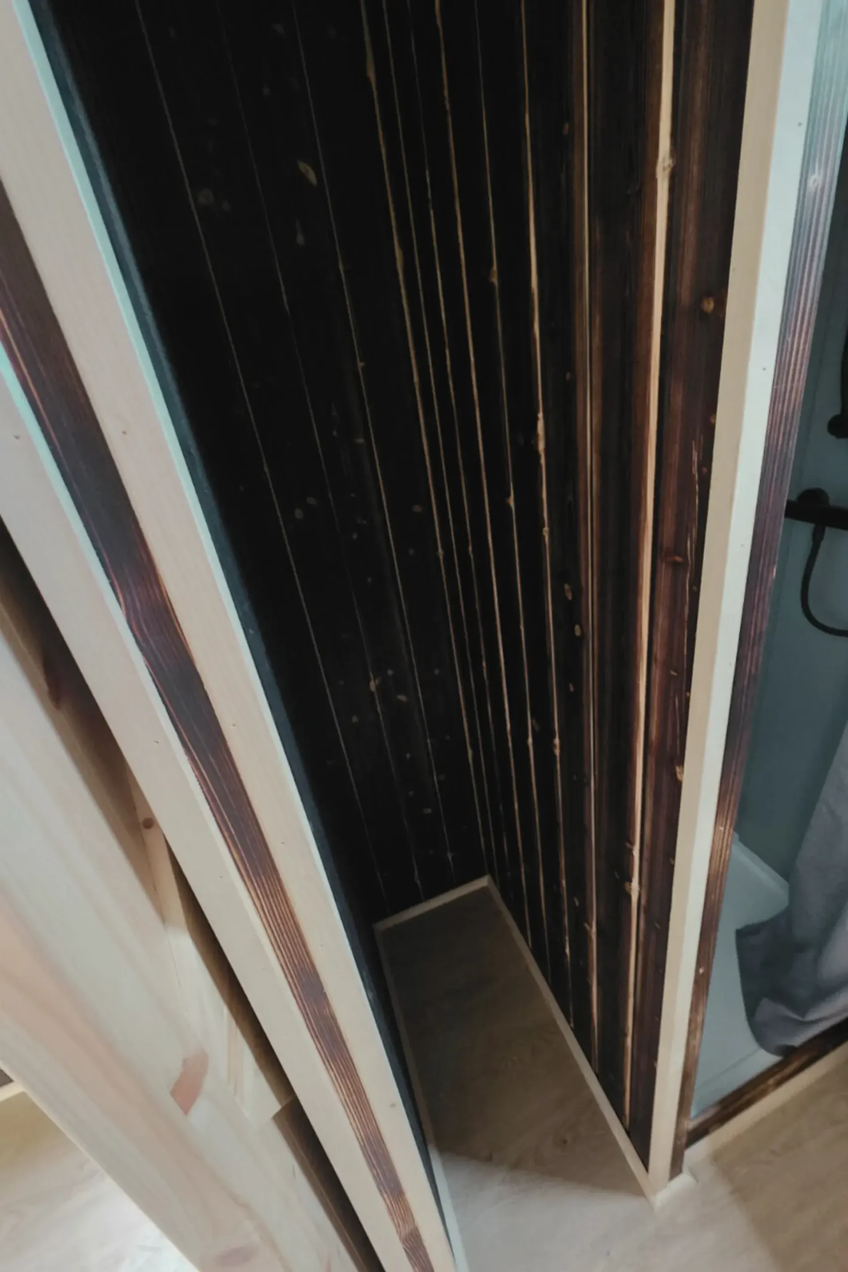 • Das Äußere des Hauses ist mit 14 mm dicken Fichtenbrettern verkleidet, gehobelt und gebürstet.