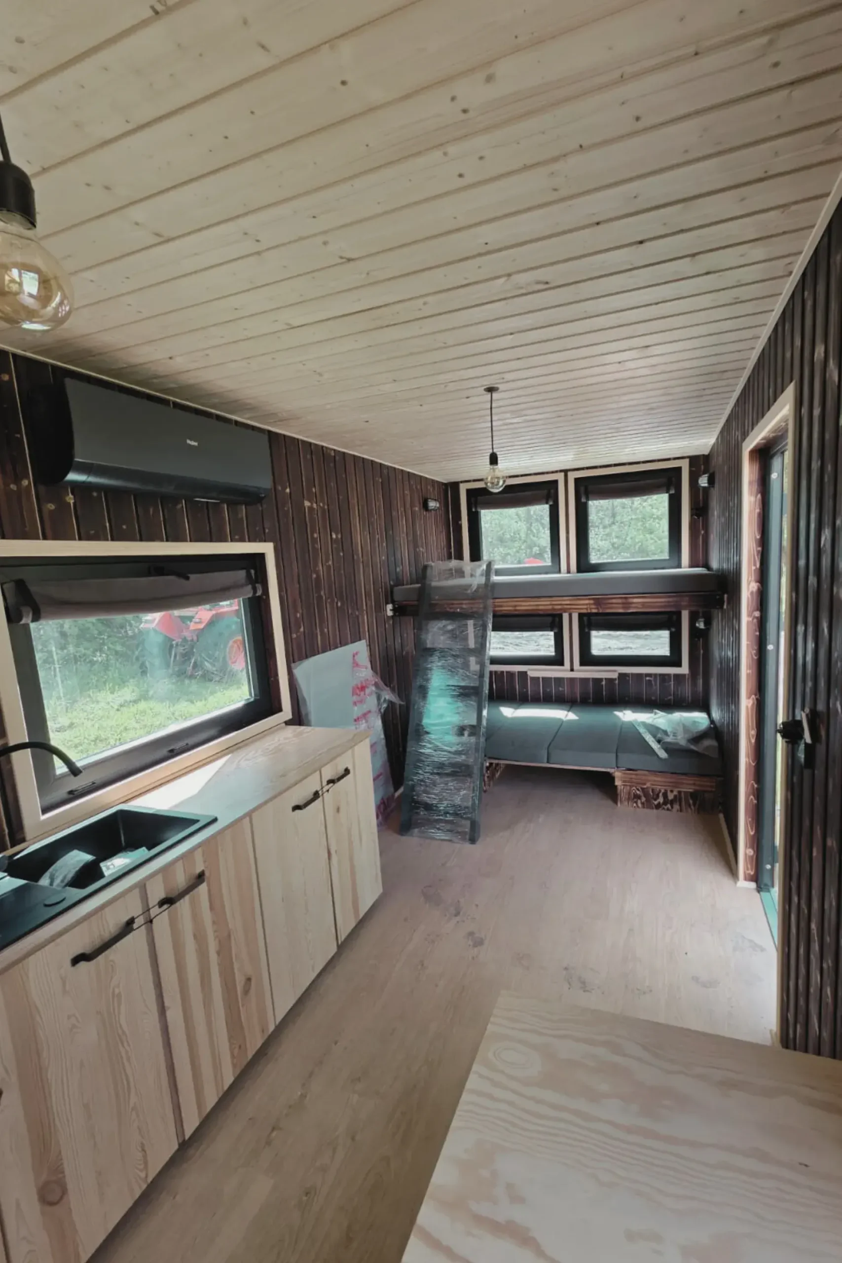 Unsere kleinen Häuser können leicht auf einem Anhänger montiert werden, wodurch Sie Ihr Zuhause überallhin mitnehmen können.