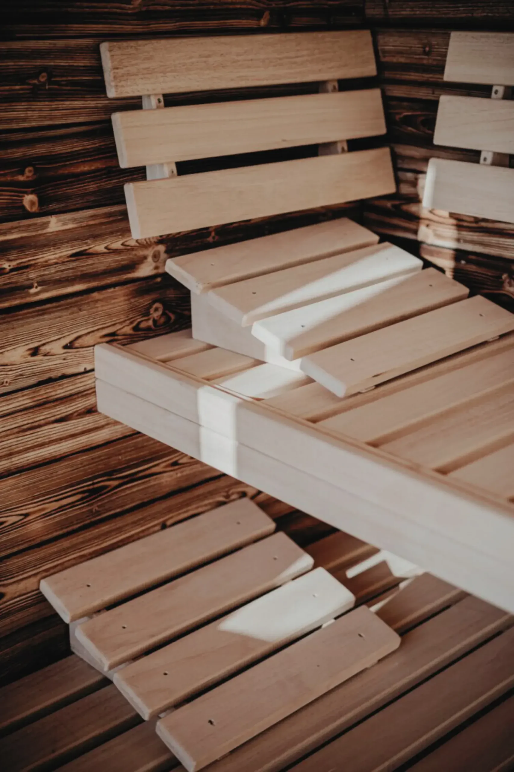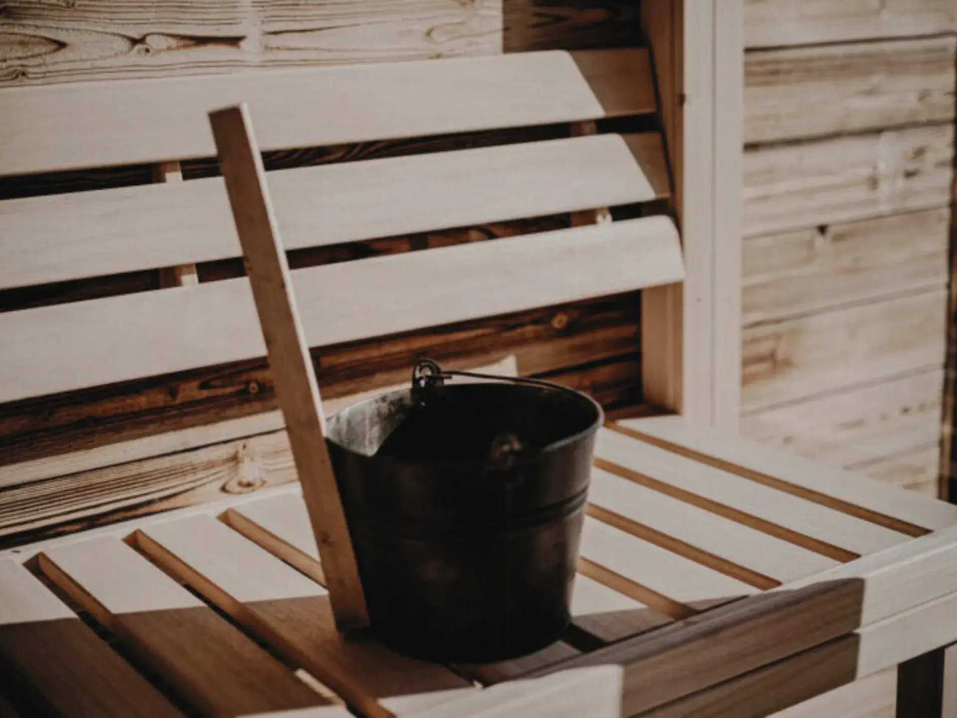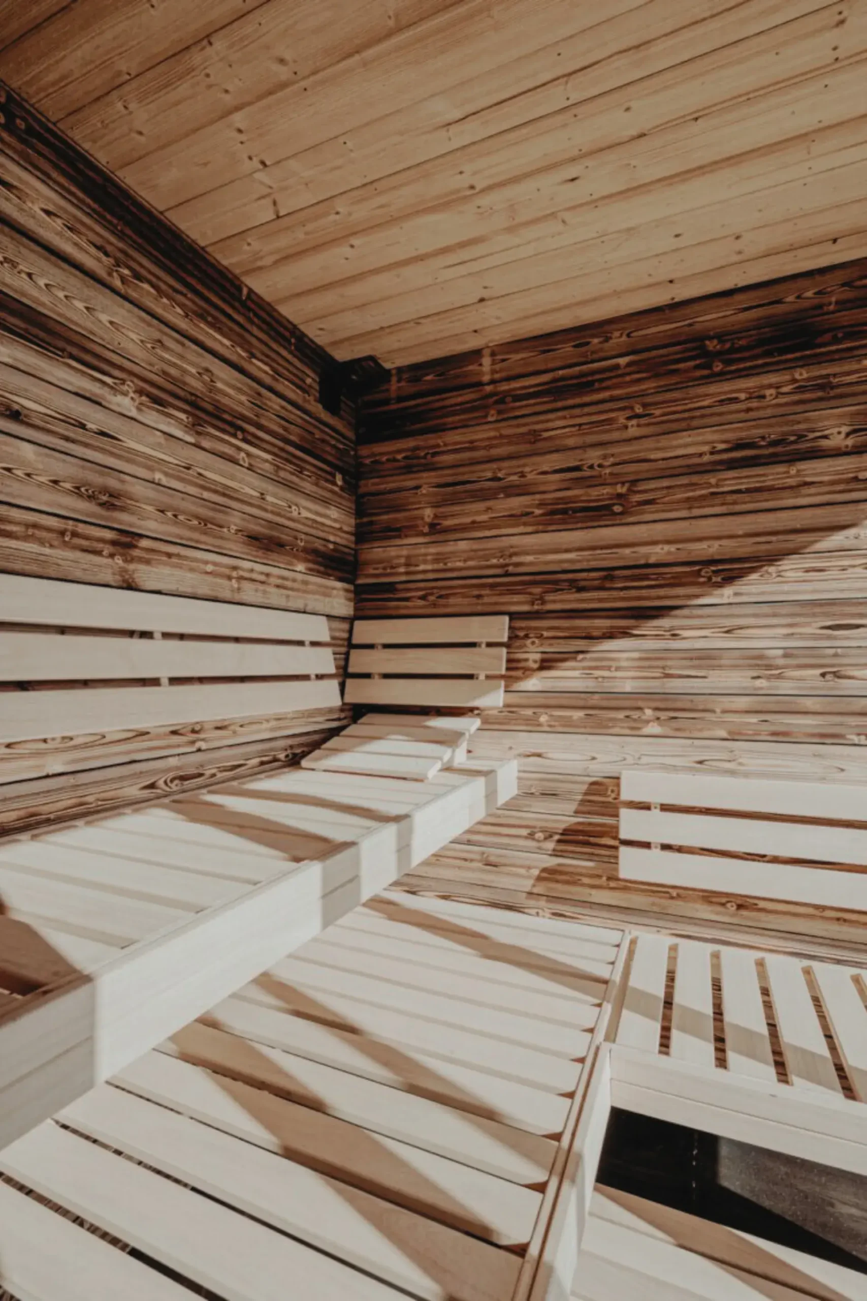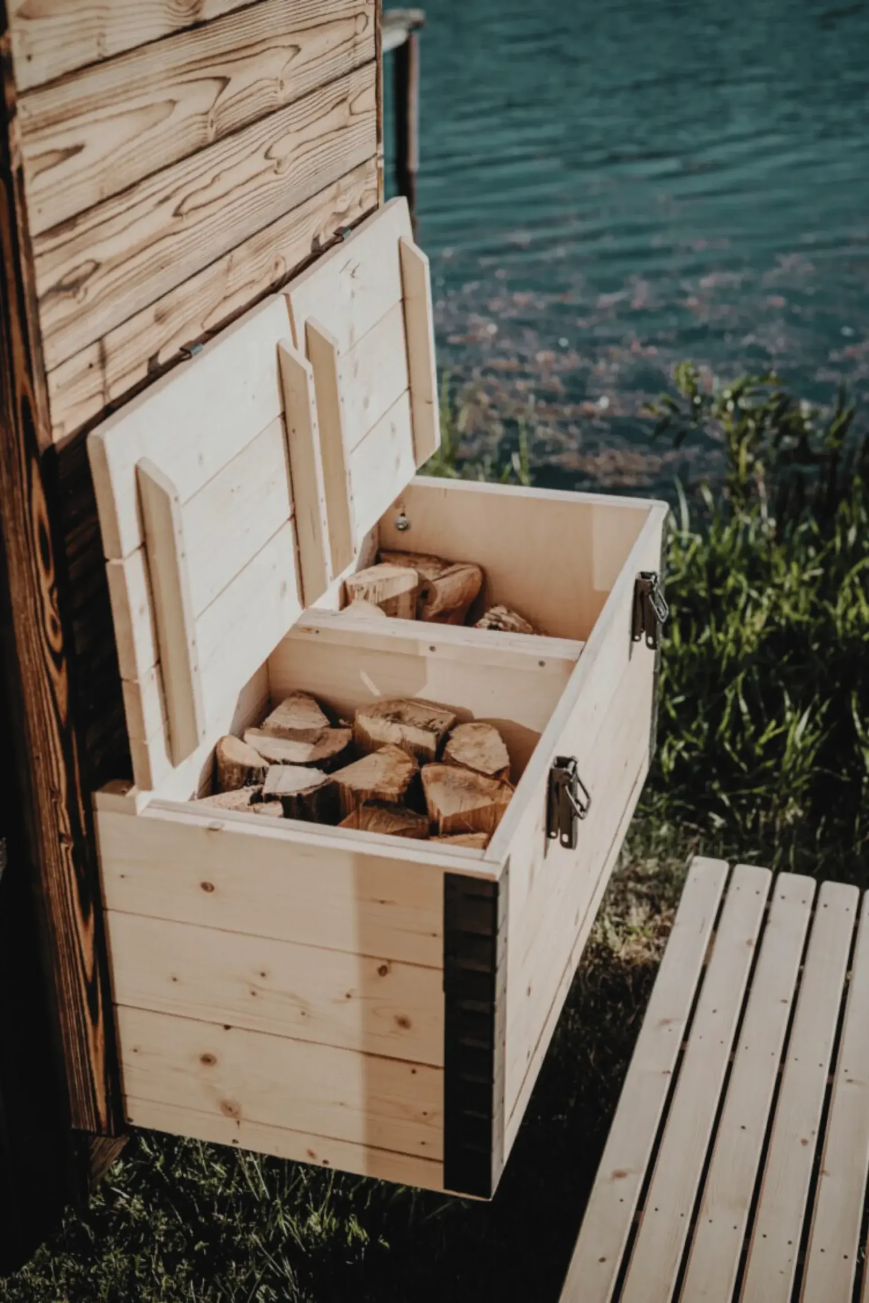 Die Sauna ist mit transparenten Lacken der Firma Tikkurila imprägniert.