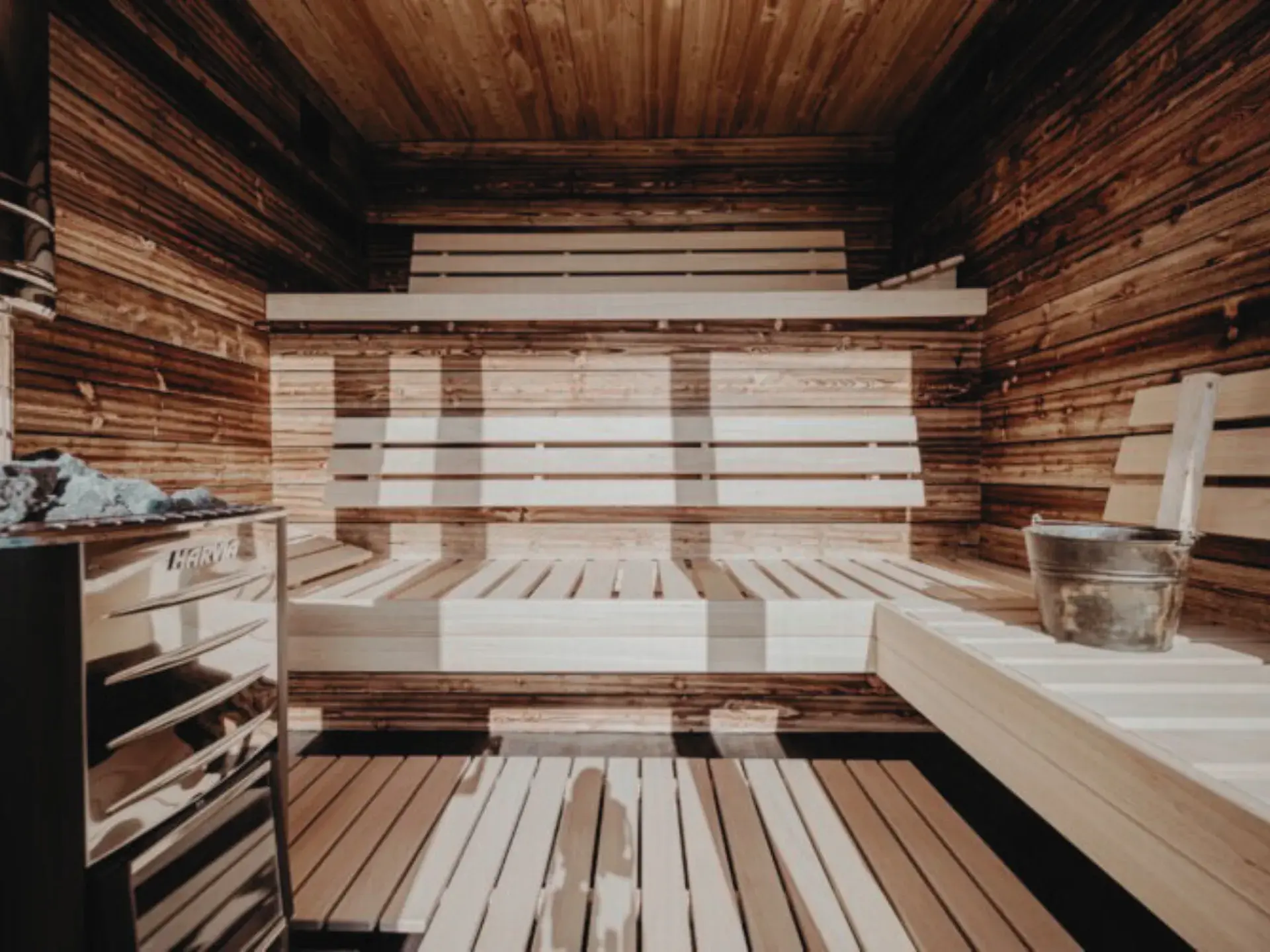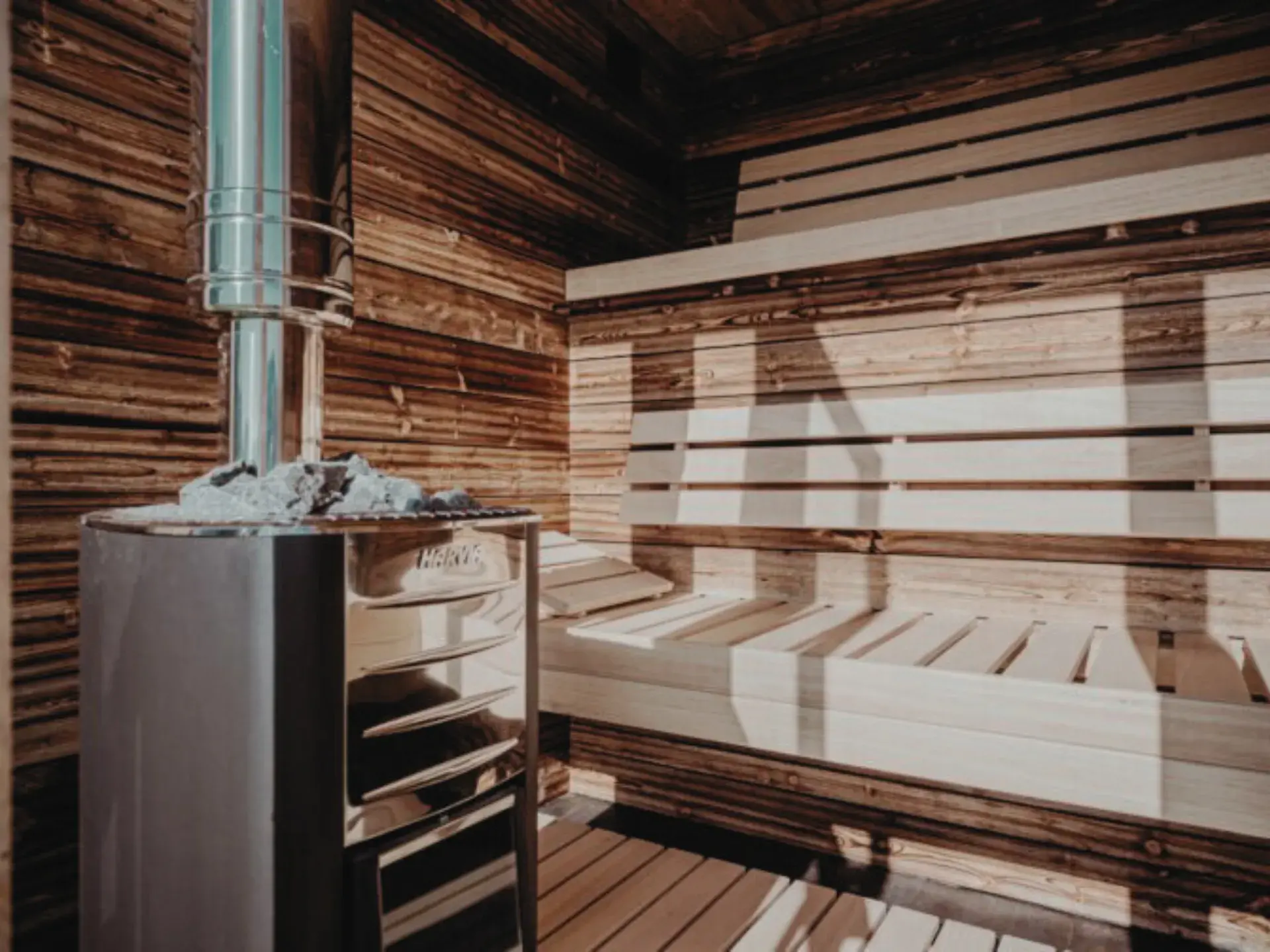 • Die Sauna ist mit Farben und transparenten Lacken der Firma Tikkurila imprägniert.