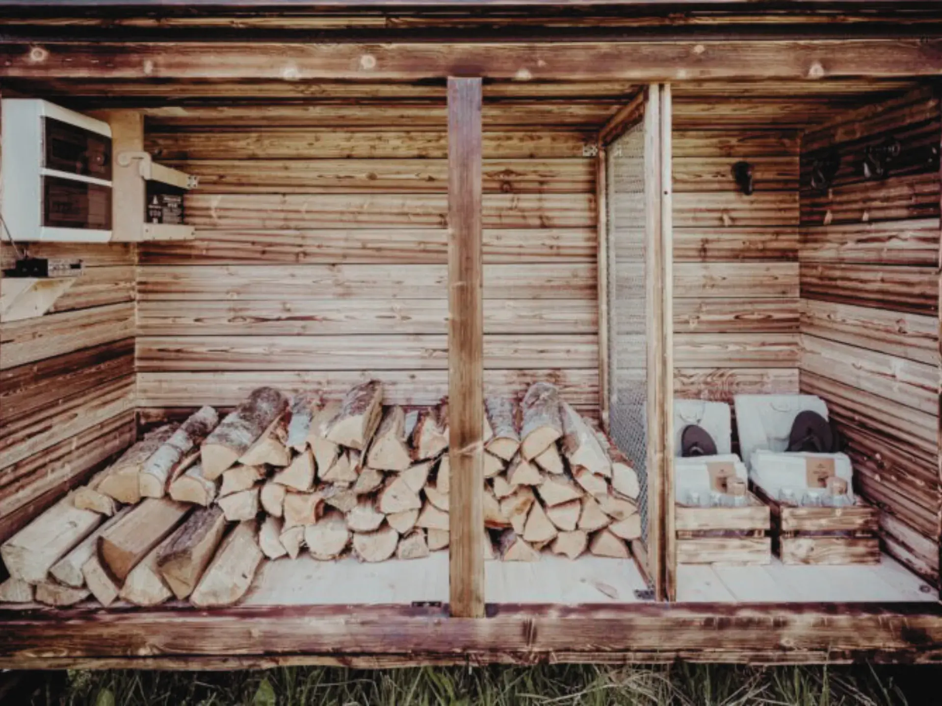• Die Sauna ist außen mit 21 mm dicken Fichtenbrettern verkleidet
