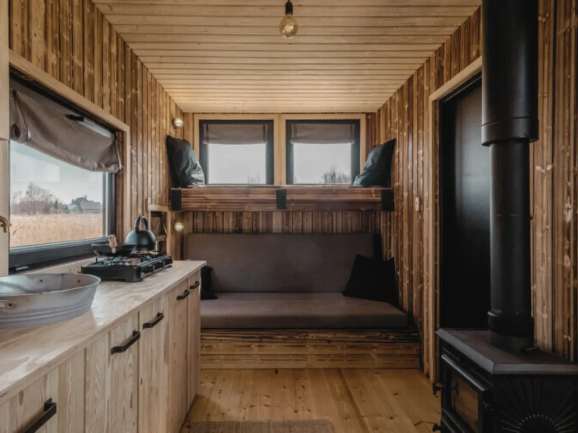Unsere kleinen Häuser können leicht auf einem Anhänger montiert werden, wodurch Sie Ihr Zuhause überallhin mitnehmen können.