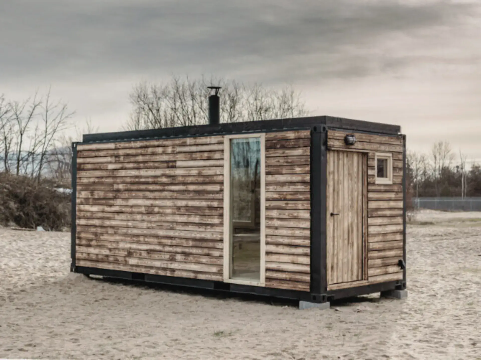 Geeignet zum Wohnen auf einem Anhänger oder auf einem vorbereiteten Grundstück.