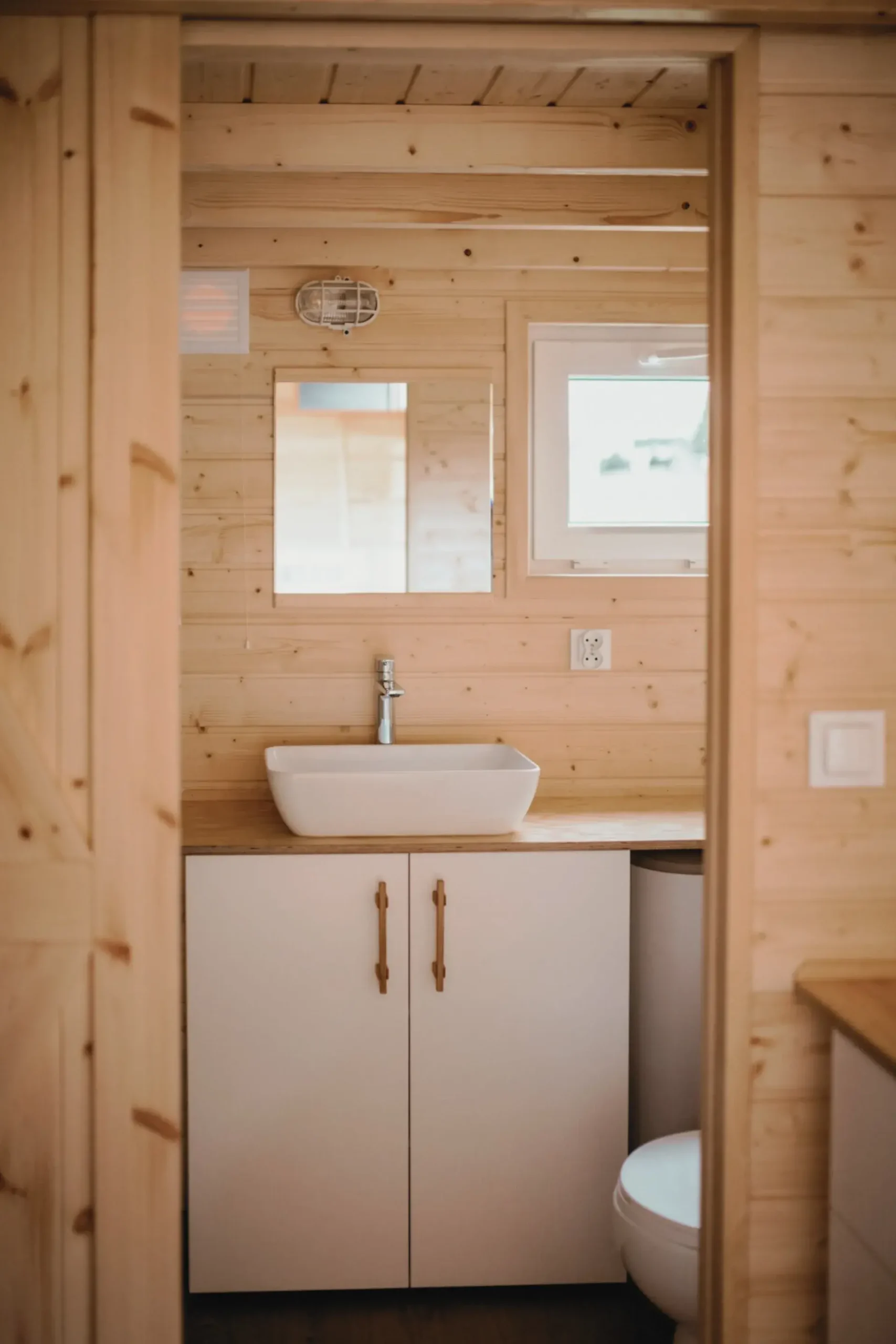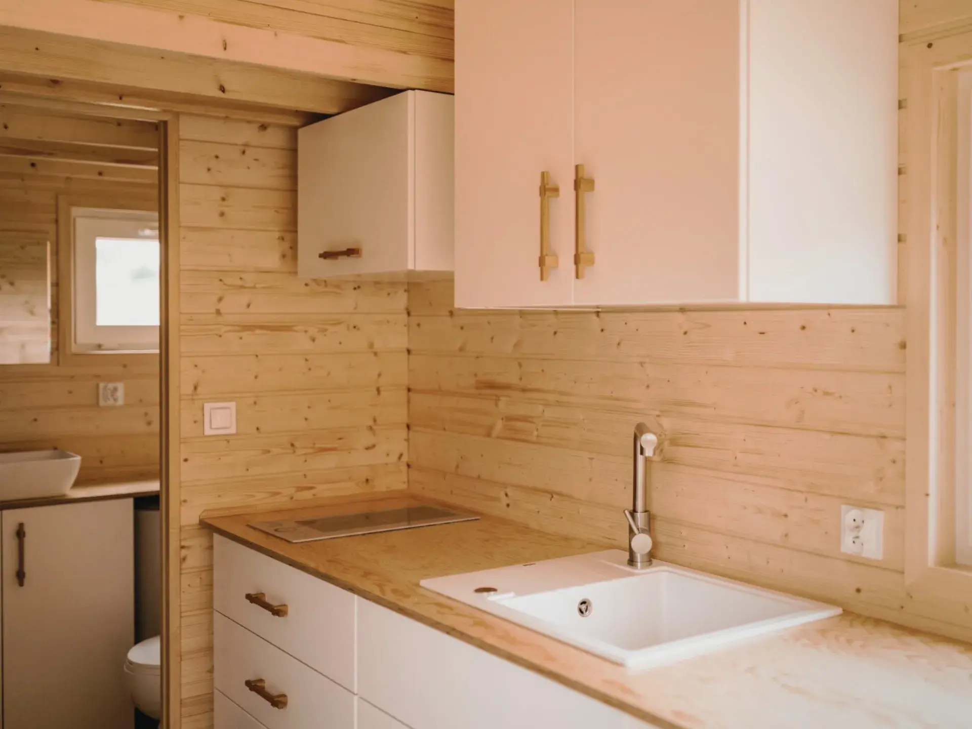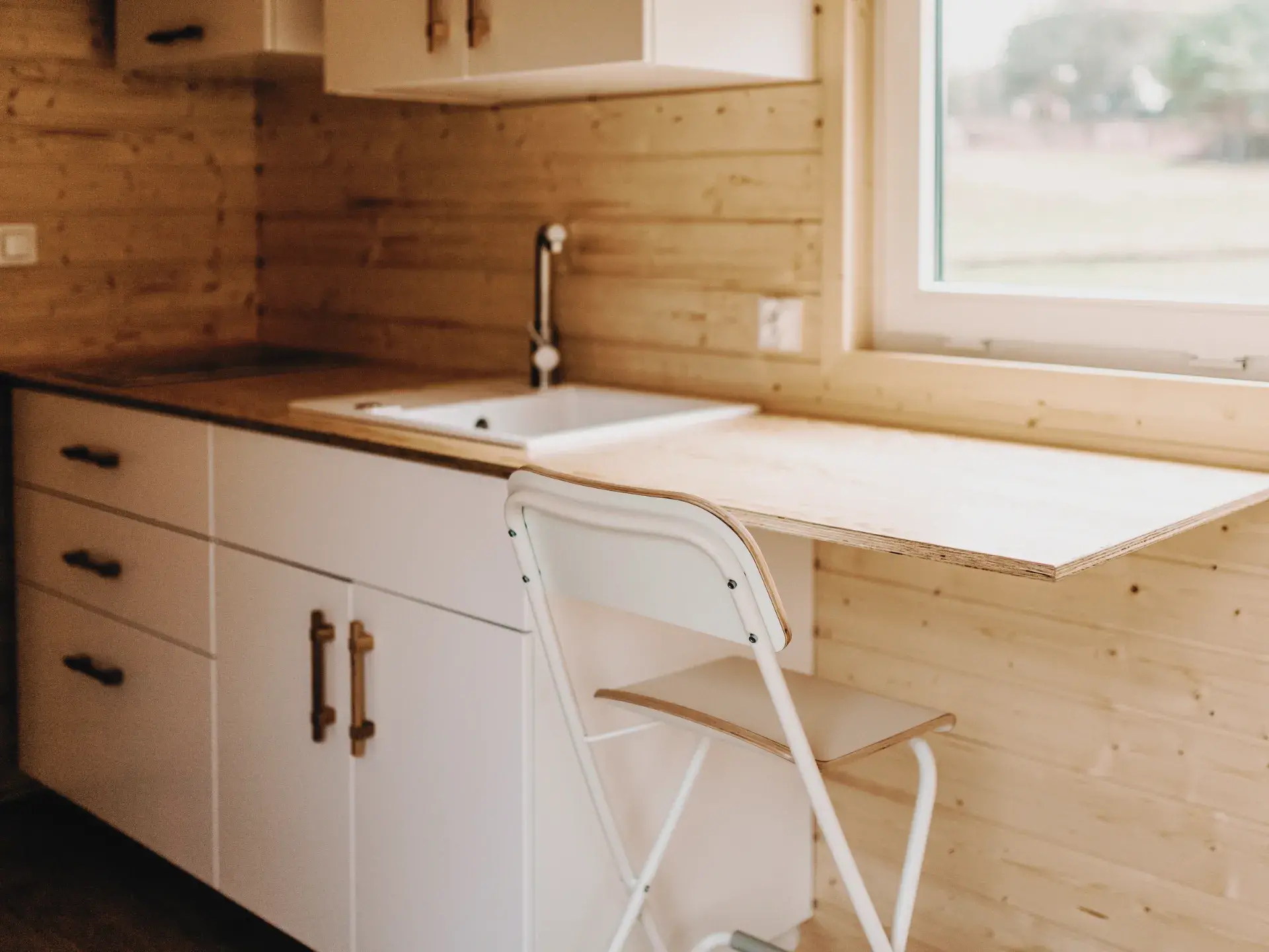 Unsere Tiny Häuser sind voll funktionsfähig, aber wir sind stets bemüht, die Wünsche unserer Kunden zu erfüllen und das Tiny House nach Möglichkeit anzupassen: das Tiny House kann komplett leer, aber mit allen Installationen geliefert werden. Es kann vollständig oder teilweise möbliert werden, es können gewisse Elemente der Ausstattung modifiziert werden.