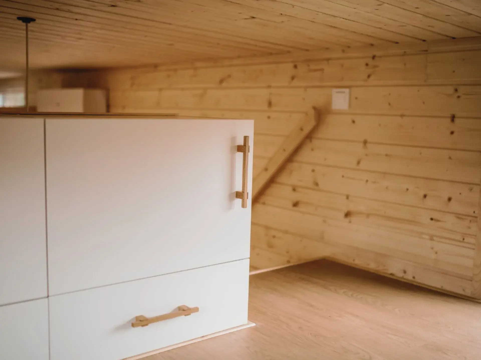 Im Haus können 6 Personen wohnen, der Komfort hängt von den individuellen Bedürfnissen ab. Es gibt zwei Schlafgeschosse und optional ein 2-Personen-Bett unter dem Zwischengeschoss.