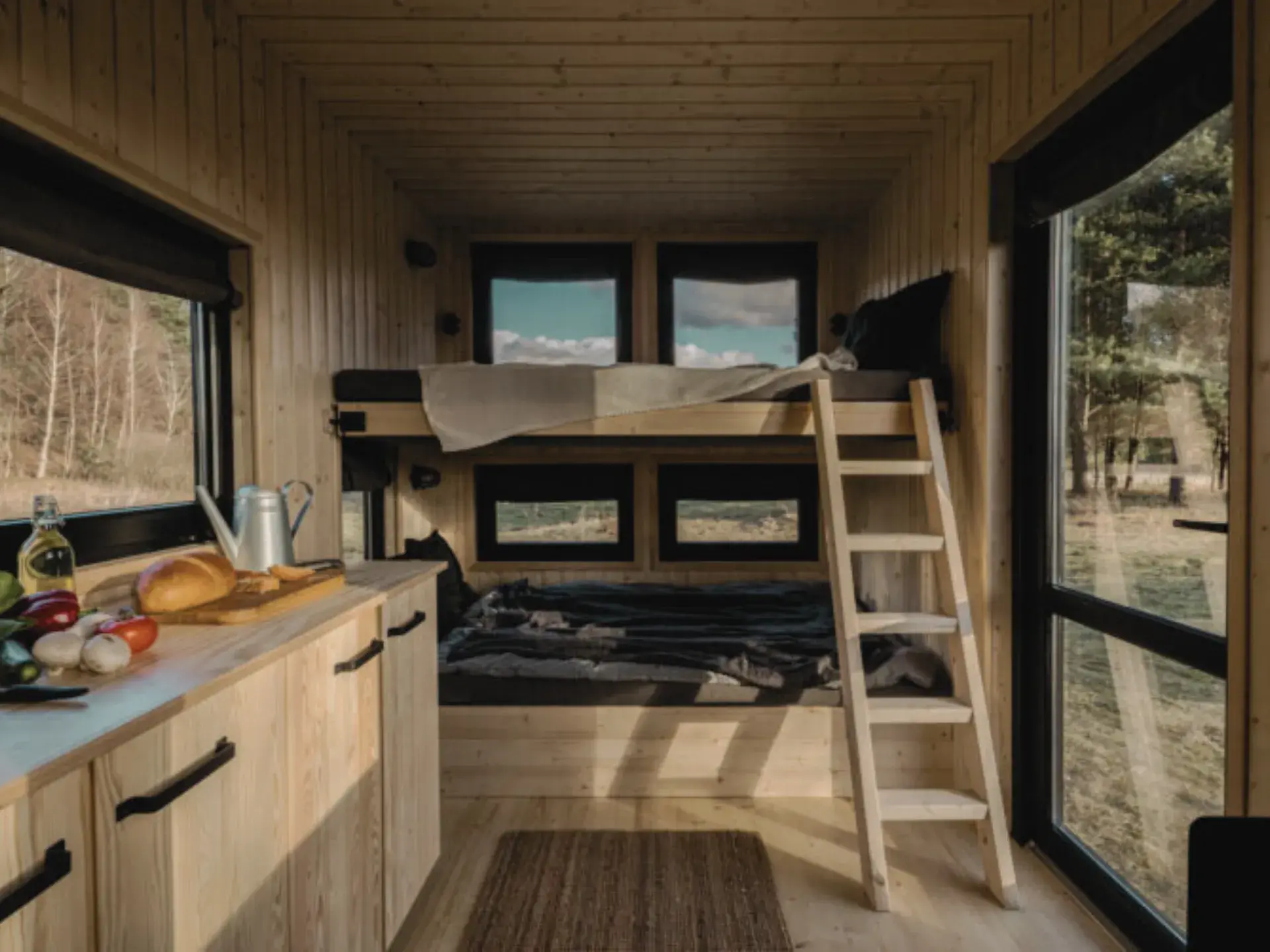 Unsere kleinen Häuser können leicht auf einem Anhänger montiert werden, wodurch Sie Ihr Zuhause überallhin mitnehmen können.